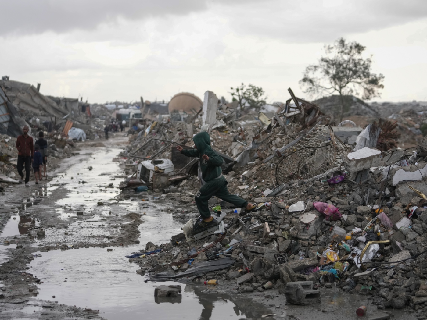 Con la maggior parte della popolazione sfollata la maggior parte degli abitanti di Gaza ora vive in tende, molte delle quali improvvisate. Ora in molti “stanno ripulendo le tende dopo le diffuse inondazioni causate da una tempesta iniziata venerdì” e si teme che le malattie possano diffondersi a causa della miscelazione dell’acqua piovana con le acque reflue.