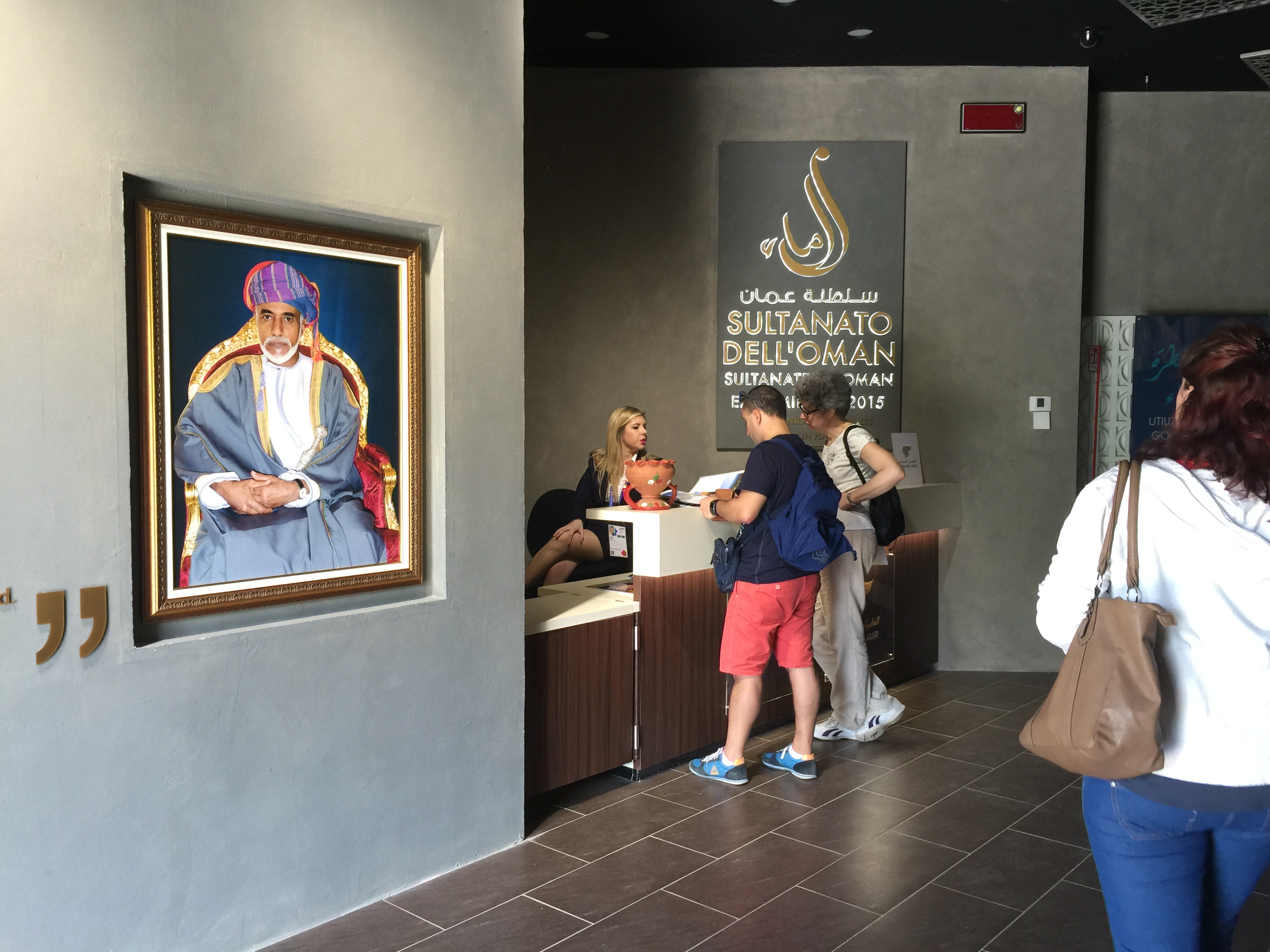 Bibì e Bibò iniziano dal Sultanato dell’Oman. Che altro non fa che spiegare un po’ il tipo di paese, le risorse alimentari, condendo il tutto con hostess occidentali in minigonna (un po’ strano per un paese islamico). Non manca, alla fine, l’omaggio al Sultano con un grande quadro all’uscita. Un fil rouge che Bibì e Bibò ritroveranno nel corso della giornata.