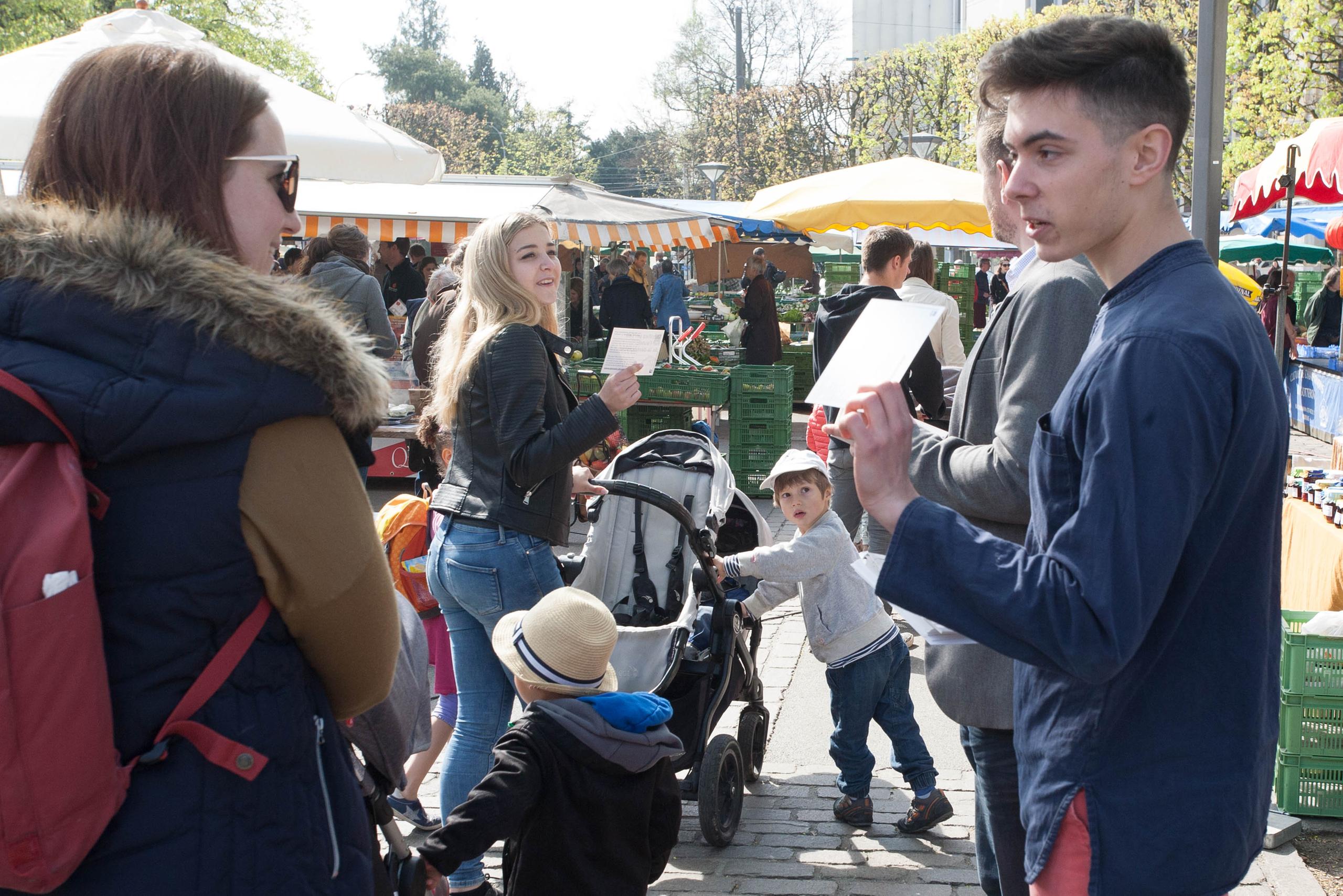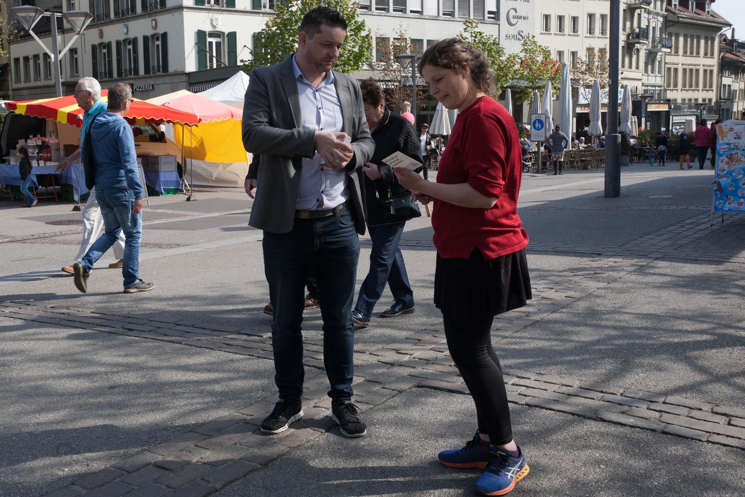 Sulla piazza c’è il mercato settimanale, la via è animata. I due militanti cercano il dialogo ed entrano immediatamente nel merito dell’iniziativa. Con passione e convinzione, illustrano ragioni e scopi. Spiegano che a loro modo di vedere oggi la Camera del popolo svizzera non è rappresentativa della popolazione e non risponde all’obiettivo di uguaglianza della democrazia.