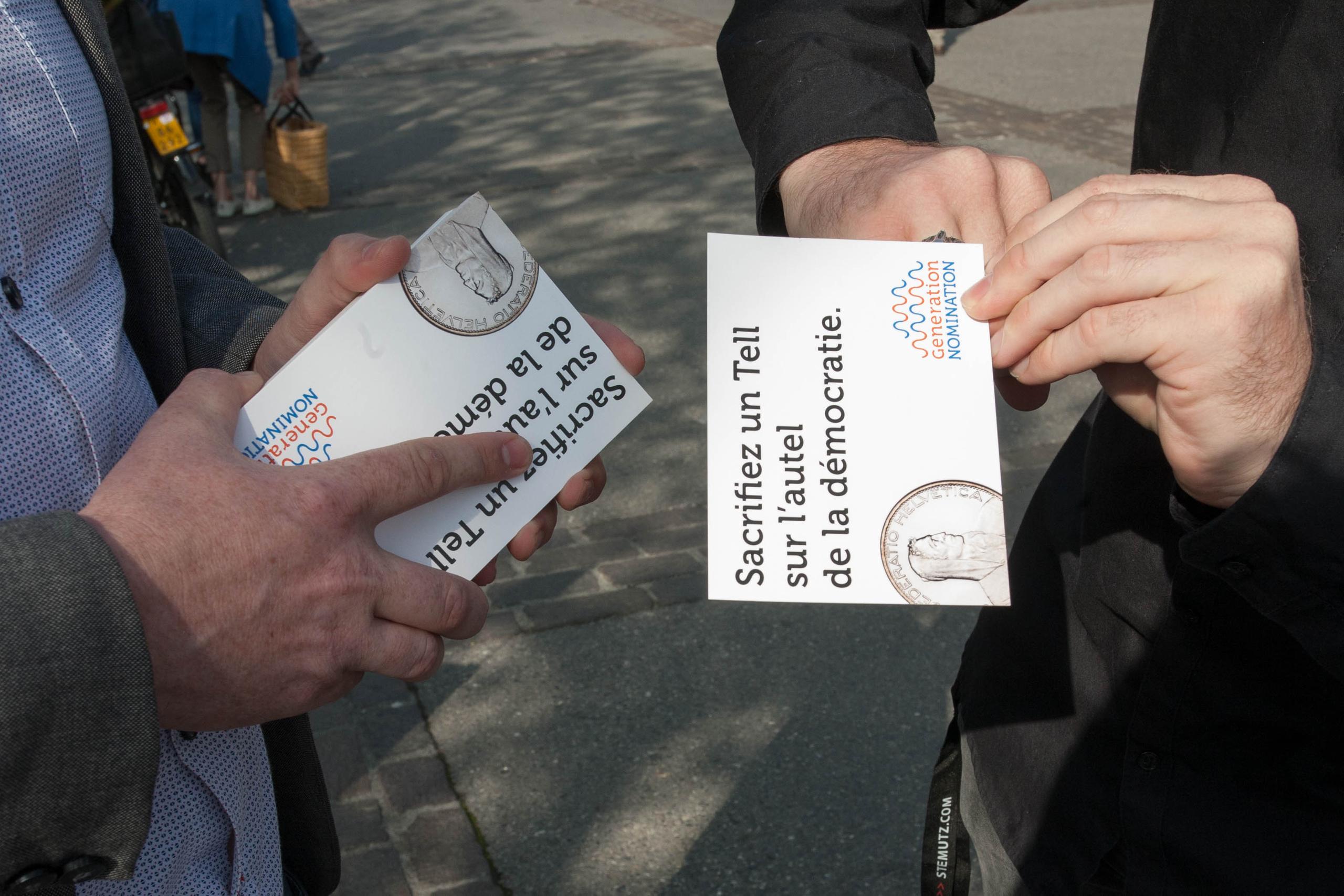 Un uomo sulla settantina ascolta solo brevemente gli argomenti di Nicolas Locatelli, rifiuta di prendere la cartolina, poi si avvicina a noi dicendoci: “Ancora un’iniziativa folle. Ma cosa hanno in testa?”. E si allontana mugugnando. Sarà l’unico a manifestare un dissenso così netto.