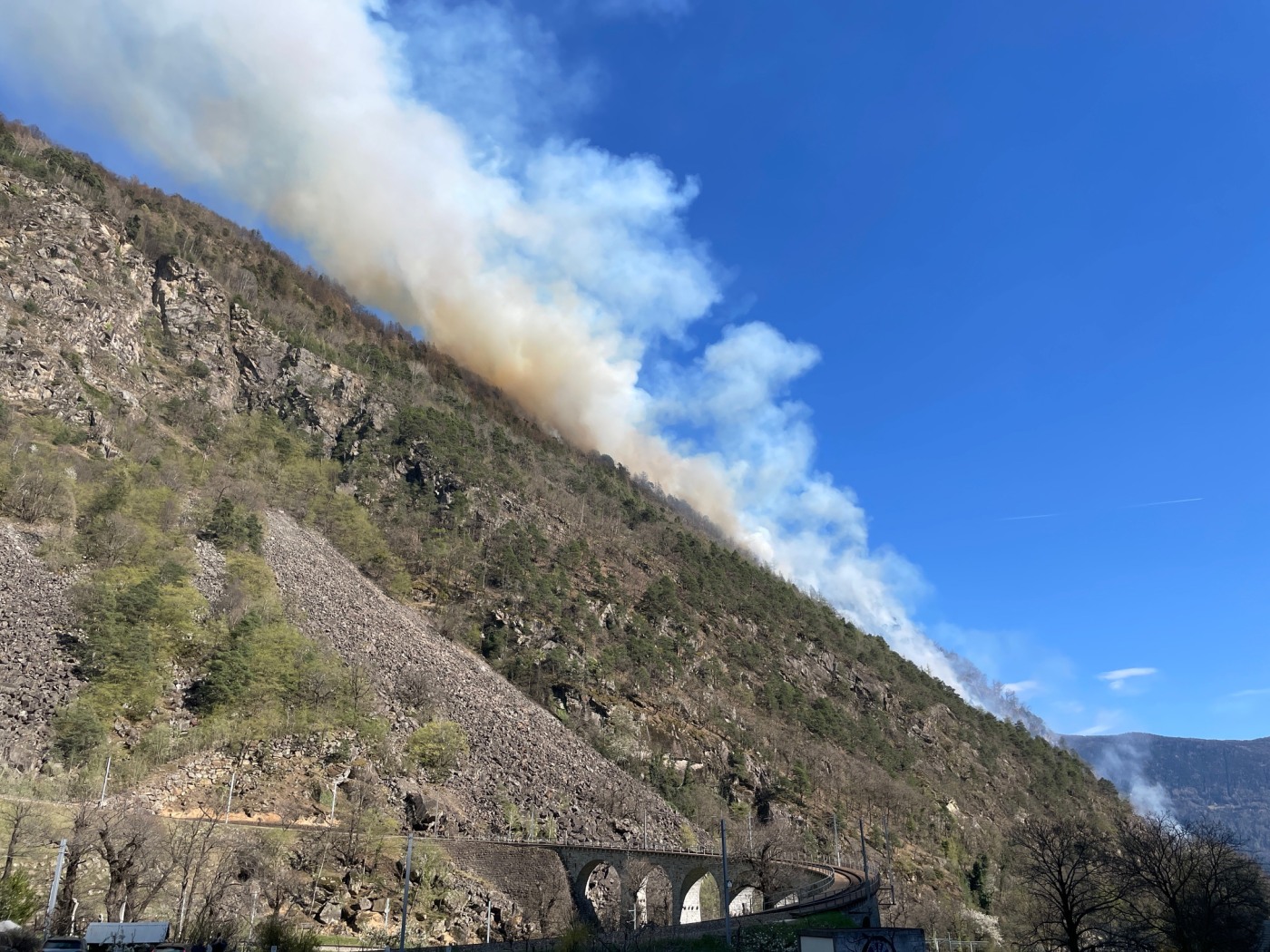 Il fumo dell’incendio è visibile da diverse località della Valposchiavo e anche oltre confine, in Valtellina (I), dove molti residenti hanno segnalato la colonna di fumo nell’arco della giornata.