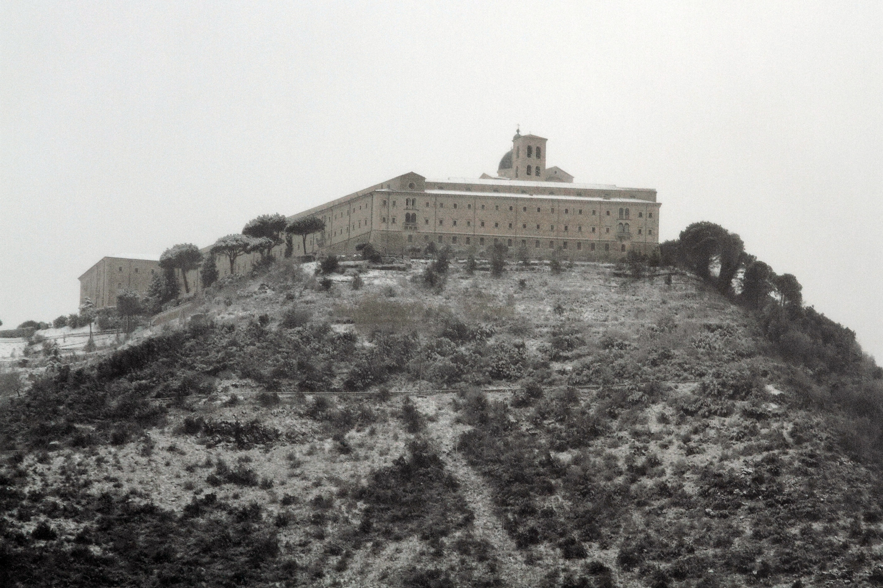 Decisamente un brutta sorpresa all'Abbazia di Montecassino, peggio della nevicata del 2012 ansa