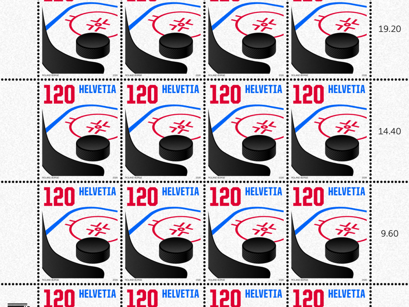 Per celebrare il Campionato mondiale di hockey casalingo, che si disputerà in Svizzera a maggio, la Posta ha emesso un nuovo francobollo stampato su carta da lucido trasparente, che evoca "le caratteristiche, la struttura e il colore della pista di ghiaccio".