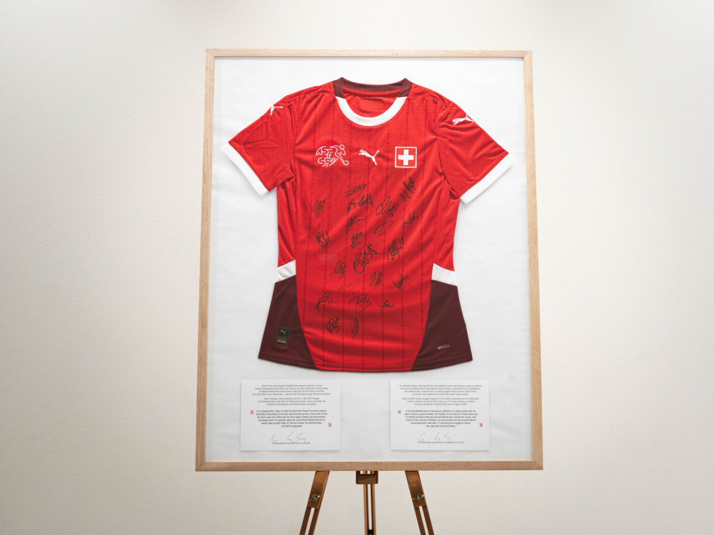 Una maglia autografata della nazionale di calcio femminile svizzera è stata venduta all'asta su Ricardo ieri sera per 3921 franchi, a favore dell'Esercito della Salvezza. La presidente della Confederazione Karin Keller-Sutter avrebbe dovuto regalarla a Papa Francesco.