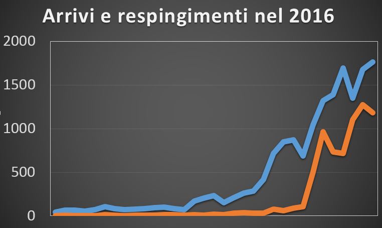 Parallelamente alla crescita delle entrate si è assistito anche ad un aumento dei rinvii di coloro che non intendono presentare una domanda d’asilo in Svizzera, ma vorrebbero attraversare il confine per raggiungere il nord Europa. Non essendoci la possibilità di transitare entro 24 ore vengono riammesse in Italia e tornano a Como e Milano dove gli accampamenti nei dintorni delle stazioni continuano a crescere.
