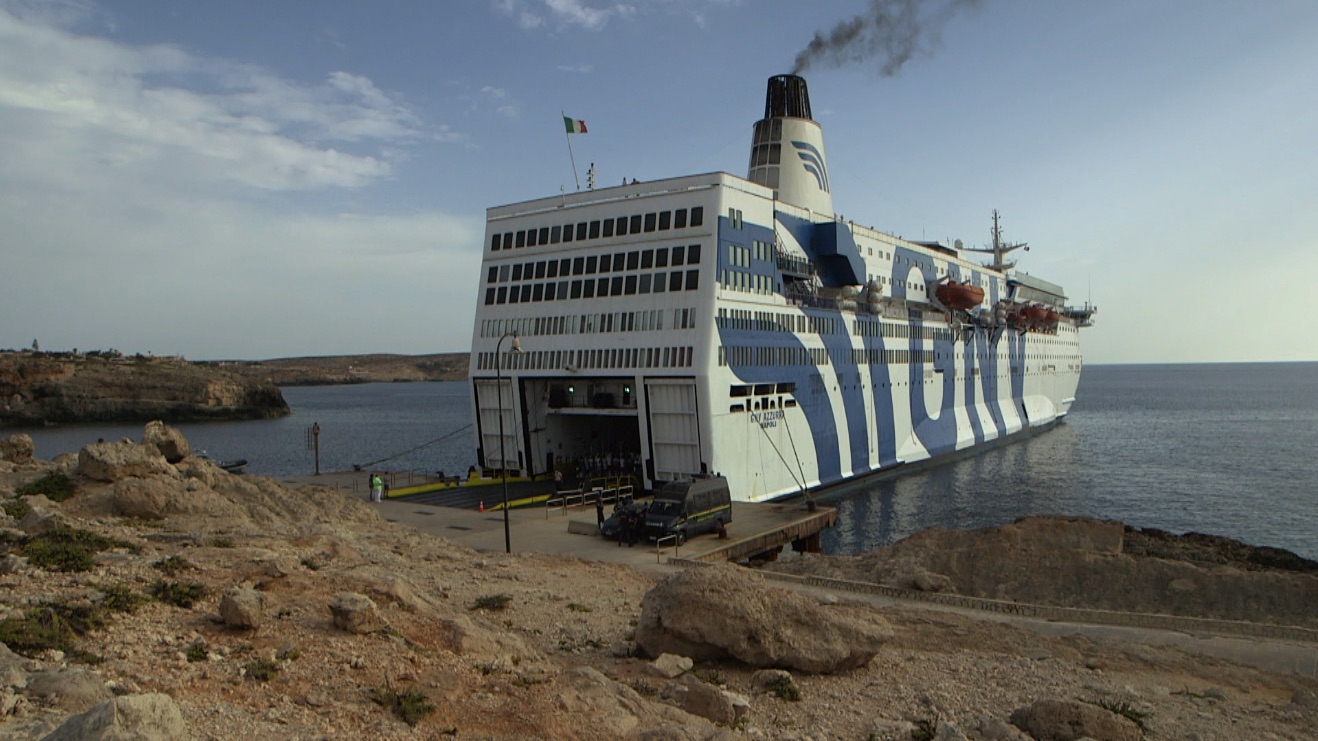 La nave Rapsody che fa spola tra Lampedusa e Bari.