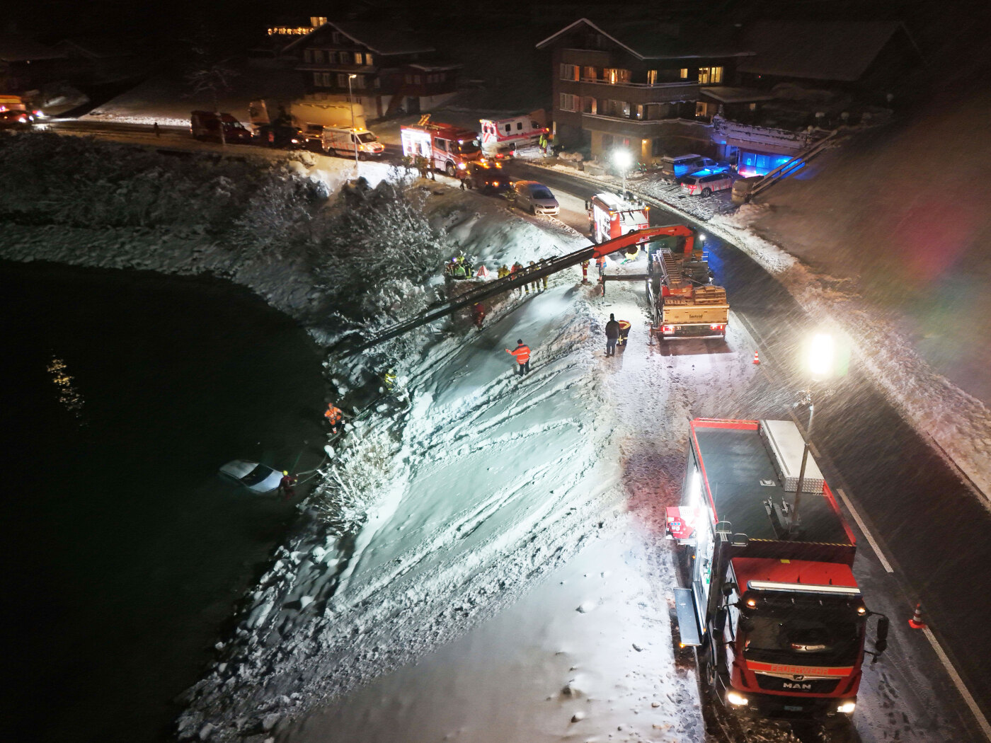 Il comandante dei vigili del fuoco di Lungern, che passava di lì, ha assistito all’incidente. È entrato immediatamente in acqua e ha tirato fuori dall’auto il conducente e il bambino, poi ha messo in sicurezza l’auto per evitare che scivolasse ulteriormente nel lago. La polizia ha dichiarato che il veicolo ha subito danni totali.
