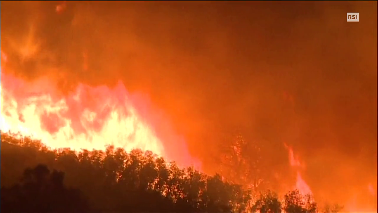 I roghi sono 18, e soltanto il 5% del fronte delle fiamme è sotto controllo. Gli incendi divampano fino a 150 chilometri a nord di San Francisco, e per fermarli si stanno impiegando elicotteri e sostanze ritardanti.