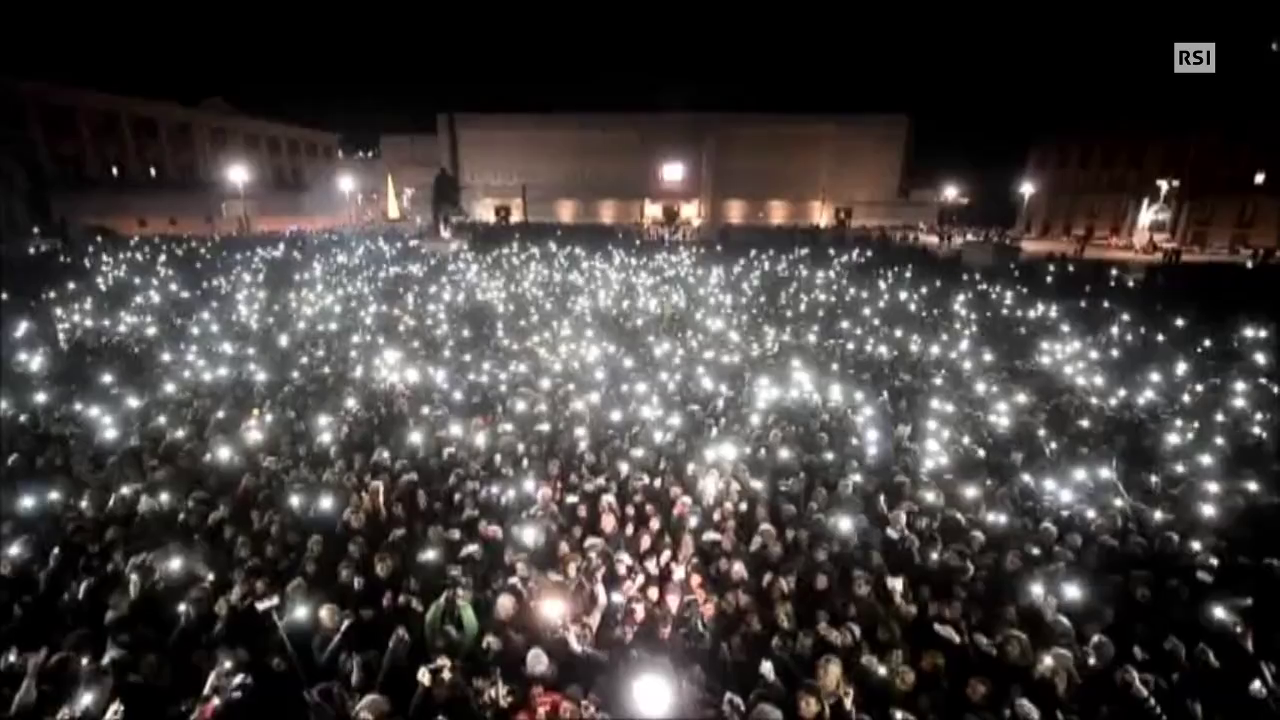 Una folla di centomila persone intona le note di alcune tra le sue più celebri canzoni, a partire da 'Napule è'