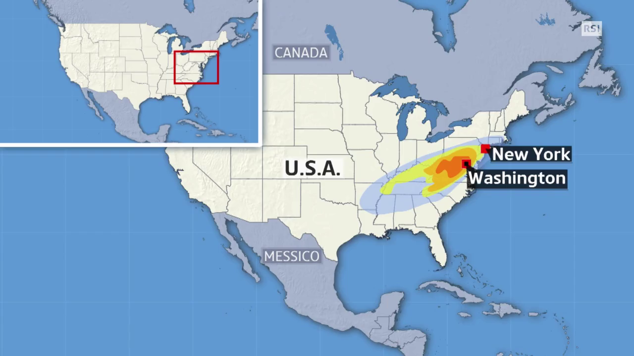 Il maltempo ha già investito il Nord Carolina e si è poi abbattuto sulla capitale, Washington, e su New York; ora si sposta verso nord. Le vittime, tutte morte in incidenti stradali, sono già una decina.