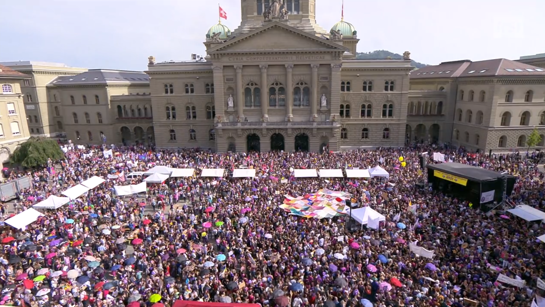Lo sciopero delle donne è stato l’occasione per illustrare un deficit in materia di parità di genere. Questa immagine negativa è stata poi in parte controbilanciata dal successo delle candidate donne alle elezioni federali, stima Presenza Svizzera.