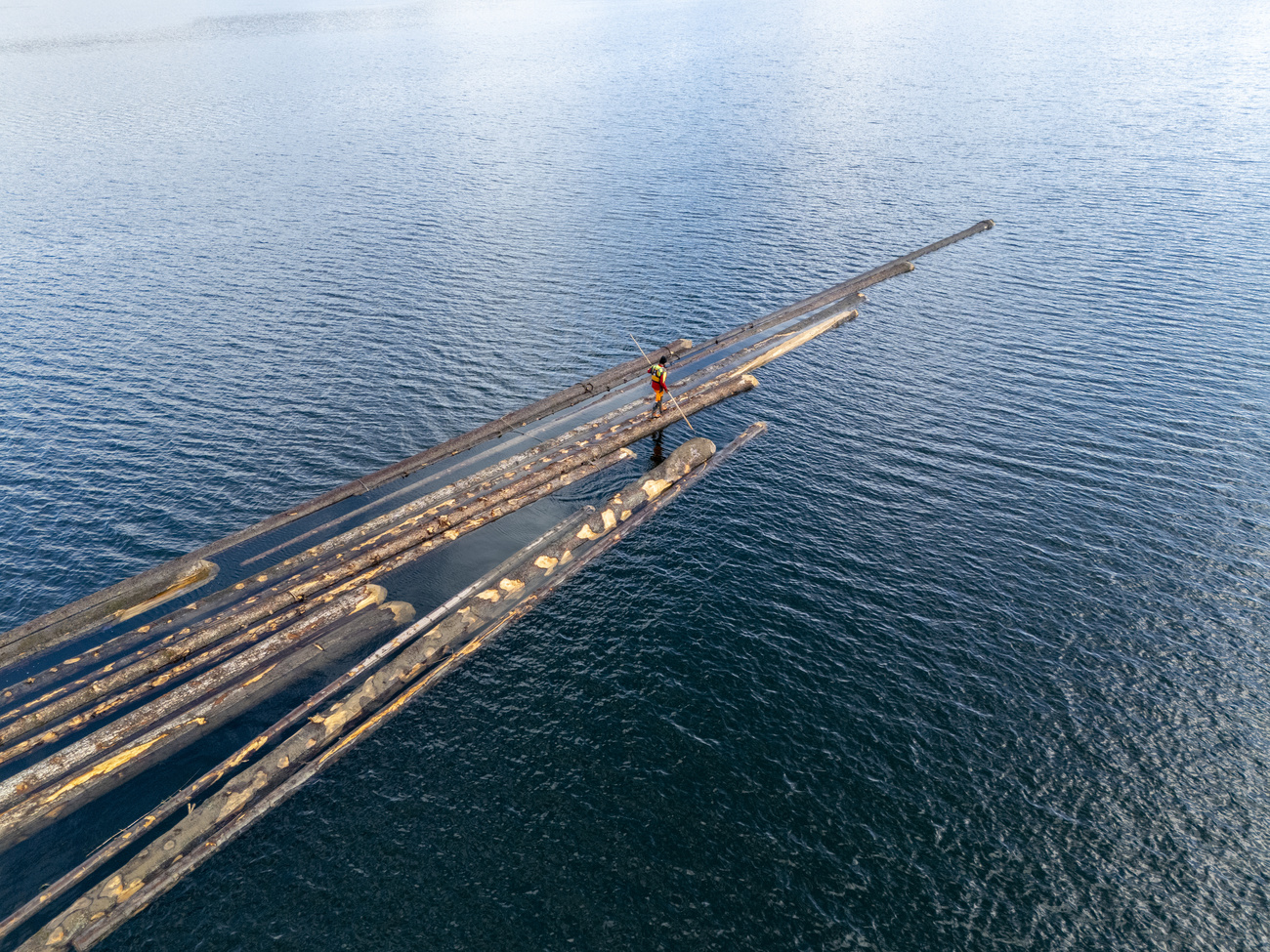 Un operaio forestale unisce i tronchi d’albero abbattuti per formare una zattera, dopo che un tronco dopo l’altro sono stati portati giù dal bosco fino alla riva del Lago d’Aegeri, nel Canton Zugo, mercoledì 12 febbraio 2025. La tradizione vivente di galleggiare sul Lago di Aegeri ha una lunga storia e si svolge ogni 4 o 5 anni dal 1850. Il rafting con la zattera da Bergmatt a Oberaegei si terrà quest’anno l’8 marzo 2025.