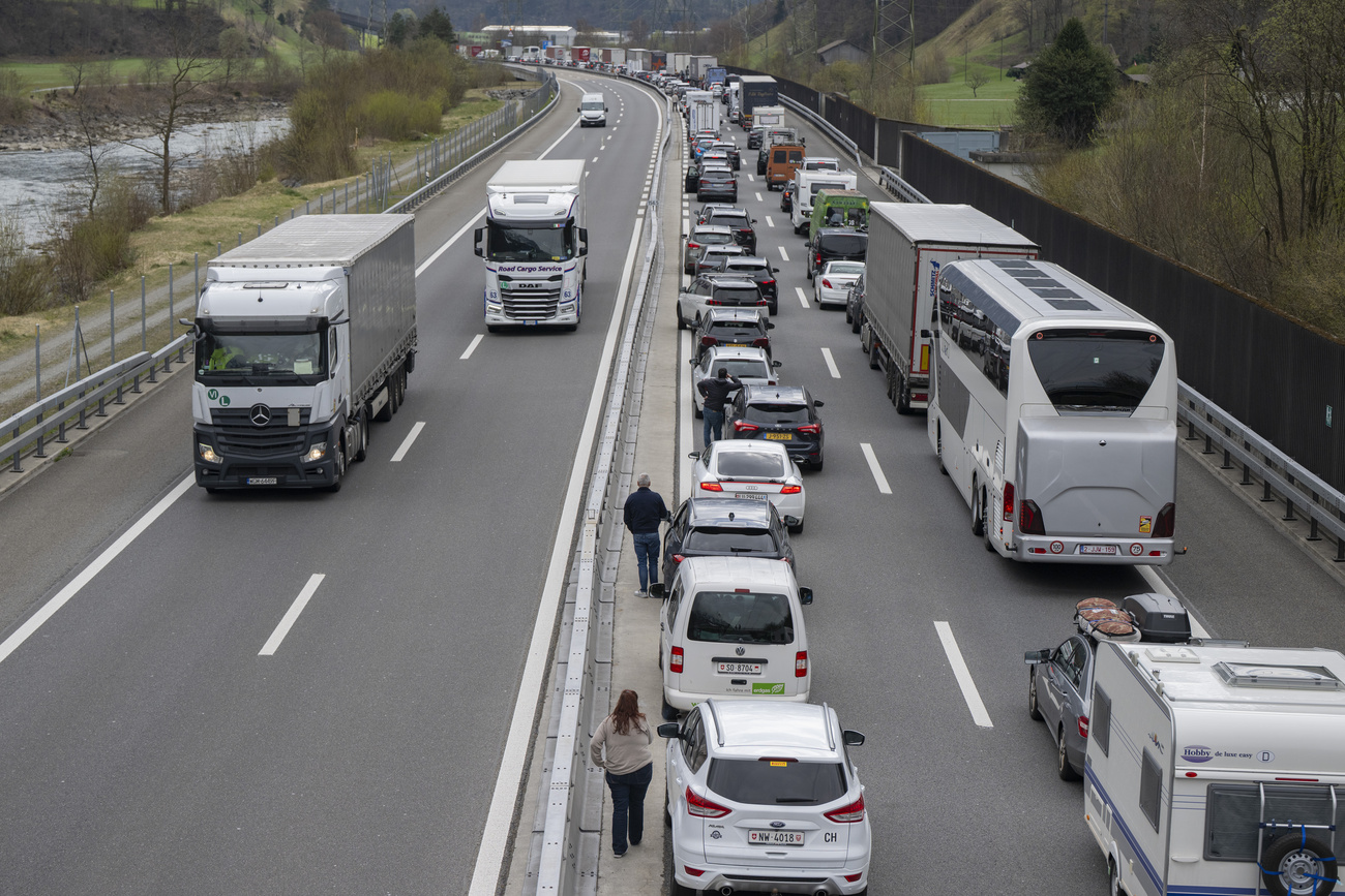 La coda al portale nord della galleria del San Gottardo, a Göschenen, ha raggiunto i 15 chilometri alle 14.30 del Giovedì Santo. Per chi viaggia sull’autostrada A2 tra Erstfeld e Göschenen, i tempi di attesa possono arrivare fino a due ore e mezza, ha comunicato il Touring Club Svizzero (TCS).