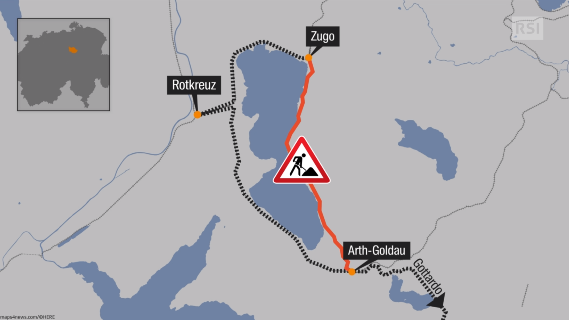 Durante i lavori, tutto il traffico a lunga percorrenza sulla tratta Zurigo-Zugo-Arth Goldau, in direzione del San Gottardo, sarà deviato su Rotkreuz, hanno annunciato mercoledì le Ferrovie federali svizzere in un comunicatoCollegamento esterno.