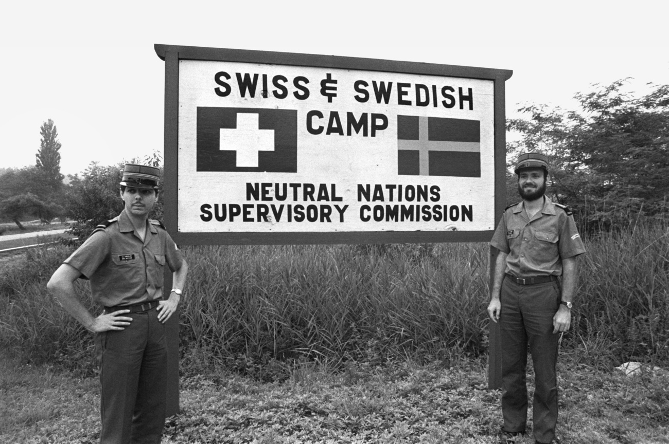 Su richiesta ufficiale degli Stati Uniti, il Governo elvetico aveva infatti accettato di inviare nella penisola coreana un gruppo di soldati per sorvegliare il rispetto dell’armistizio, nell’ambito della Commissione di supervisione delle nazioni neutrali (NNSC). All’inizio il contingente elvetico in Corea contava 156 militari. Oggi a Panmunjom, sulla linea di demarcazione tra le due Coree, sono ancora impiegati cinque ufficiali svizzeri.