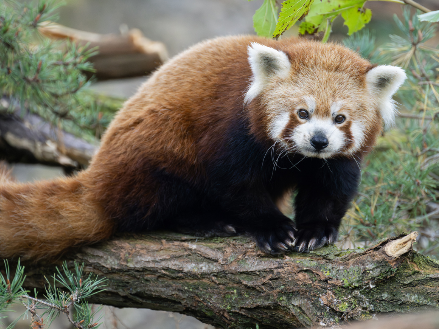 I due animali sono panda rossi (Ailuridae), più piccoli dei più noti panda bianchi e neri. A differenza di questi ultimi, la loro pelliccia è rossastra e ricorda quella delle volpi. Inoltre il loro peso è di massimo sei chilogrammi. La specie si trova nella regione himalayana e nelle montagne più a est ed è considerata in pericolo critico di estinzione.