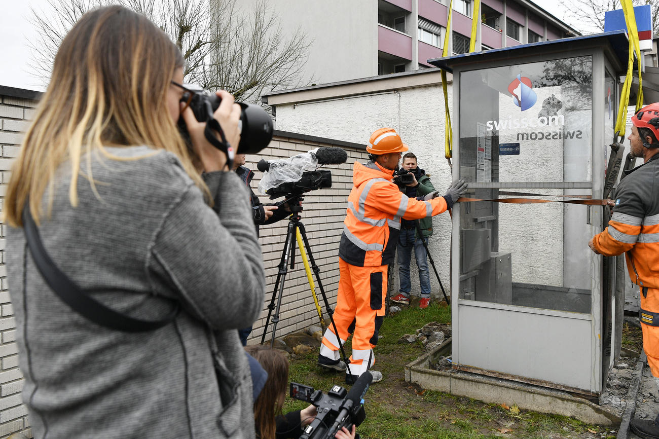 L’ex monopolista delle telecomunicazioni Swisscom, questa volta, non ha invitato la stampa al lancio di una nuova tecnologia, ma ad assistere alla scomparsa di una vecchia: il Publifon installato in Bruggerstrasse 164 a Baden nel 1962 è stato rimosso con una gru, davanti agli obiettivi di fotografi e teleoperatori.