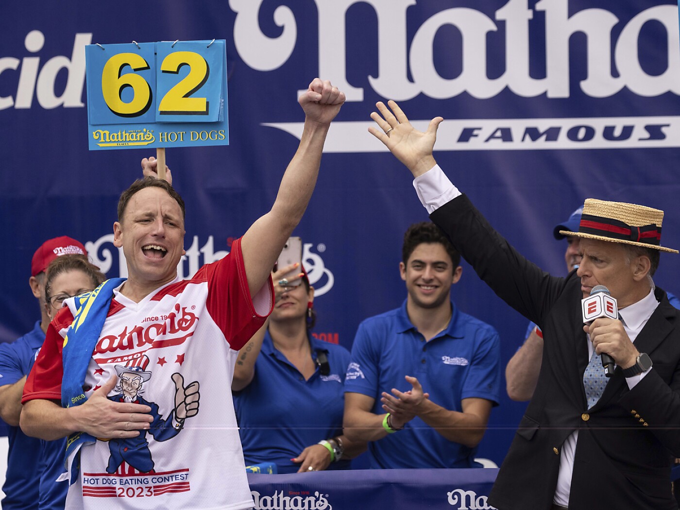 Il californiano Chestnut ha vinto 16 volte la “Cintura Giallo Senape”, l’ultima volta nel 2023 mettendo in pancia 62 hot dog, e guadagnando centinaia di migliaia, se non milioni di dollari grazie alle sue insolite capacità di abbuffarsi di panini e altri tipi di cibo.