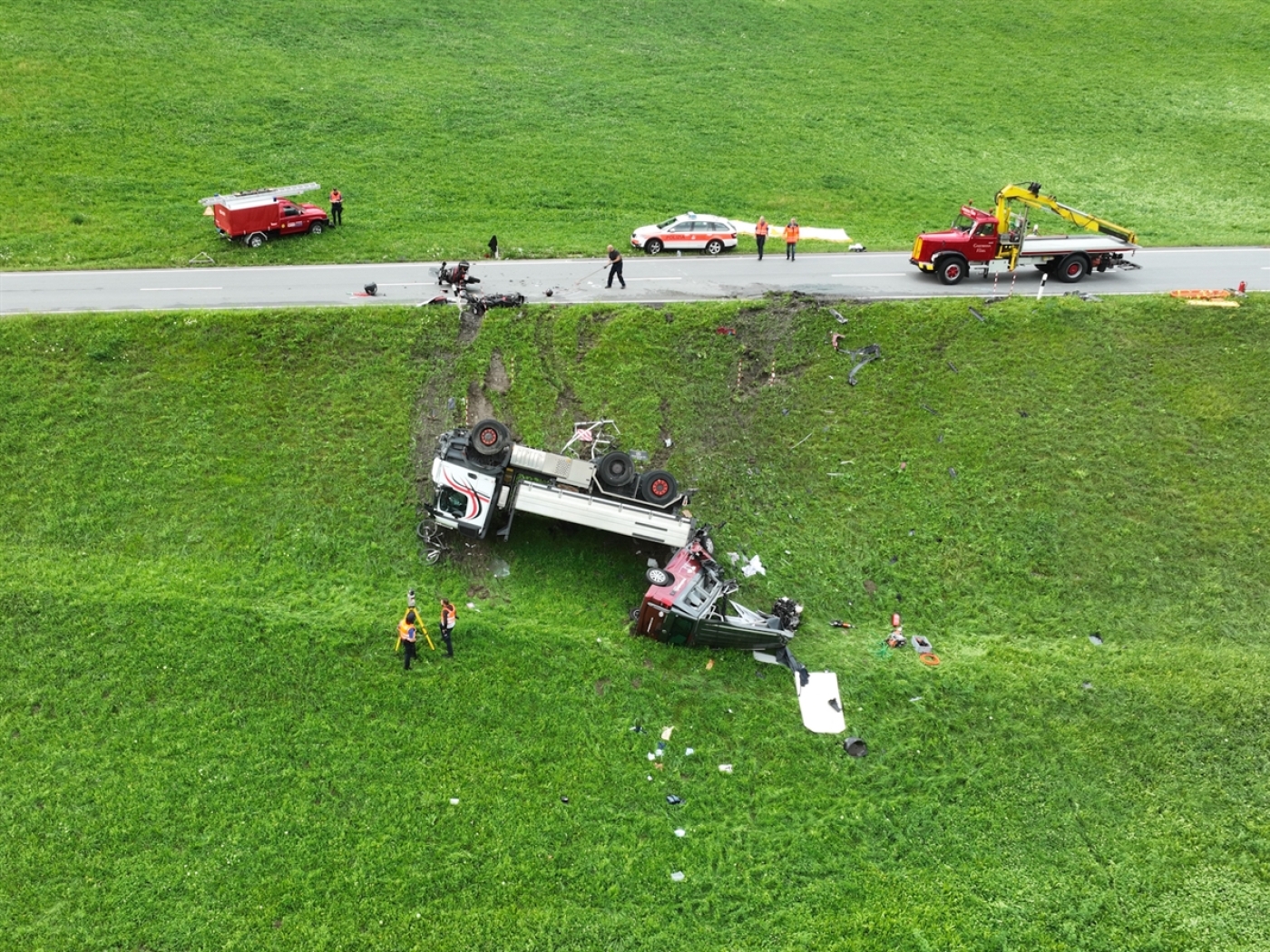 A causa dell’impatto fra camion e camper, entrambe i veicoli sono finiti fuori strada, capovolgendosi. La donna alla guida del camper, rimasta bloccata nell’abitacolo, è deceduta sul posto nonostante il prodigarsi dei soccorritori, mentre la figlia di 14 anni ha riportato ferite di media gravità. La donna al volante della moto si è invece procurata gravi contusioni e ferite: entrambe sono state ricoverate con un elicottero all’ospedale cantonale di Coira. Il camionista è rimasto illeso. A causa delle operazioni di soccorso e recupero dei veicoli, la strada dell’Oberalp è rimasta chiusa per svariate ore, venendo riaperta al traffico solo verso le 21.30.