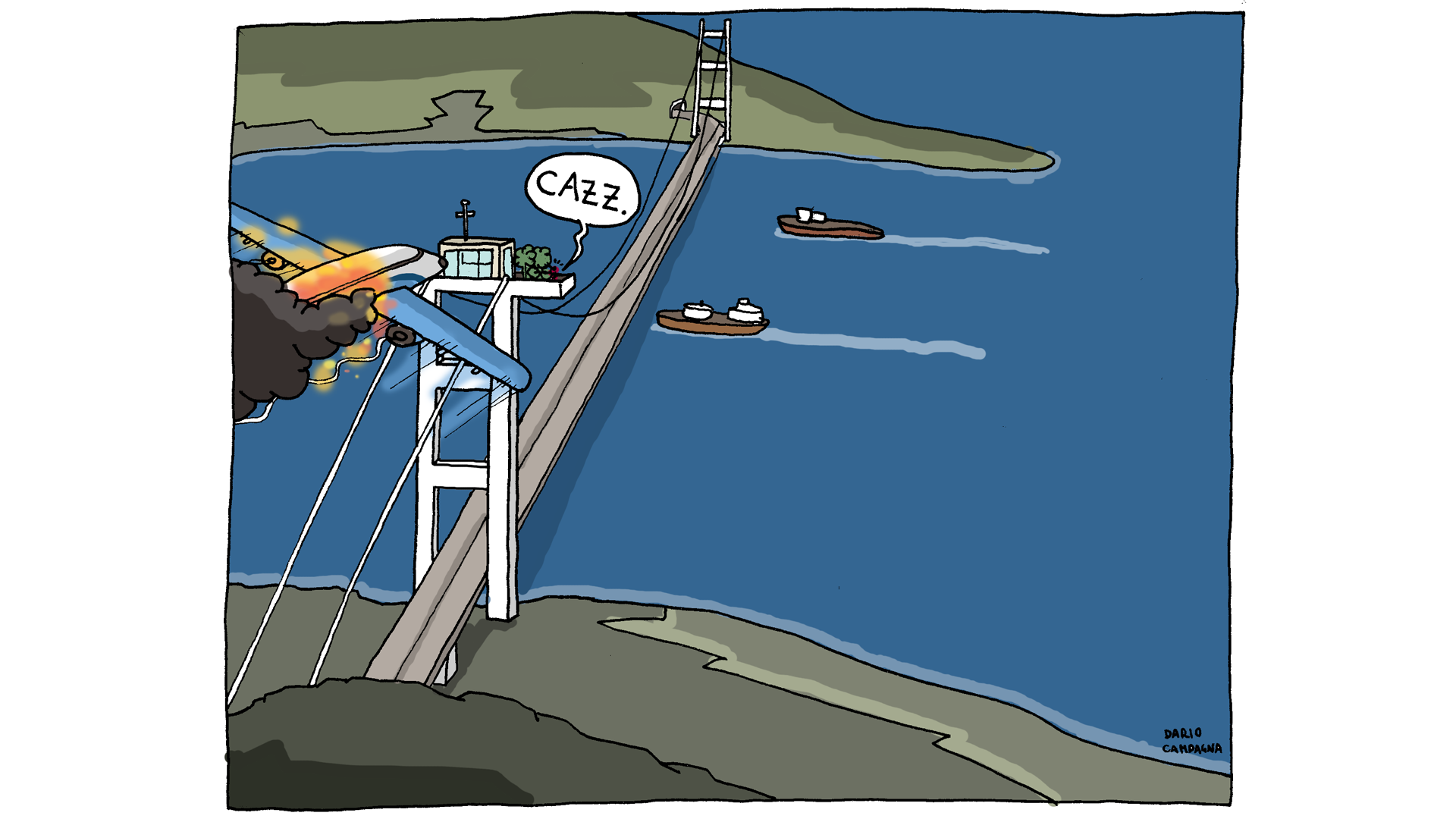 “Aereo russo precipita su attico di Bertone in cima al ponte sullo stretto”