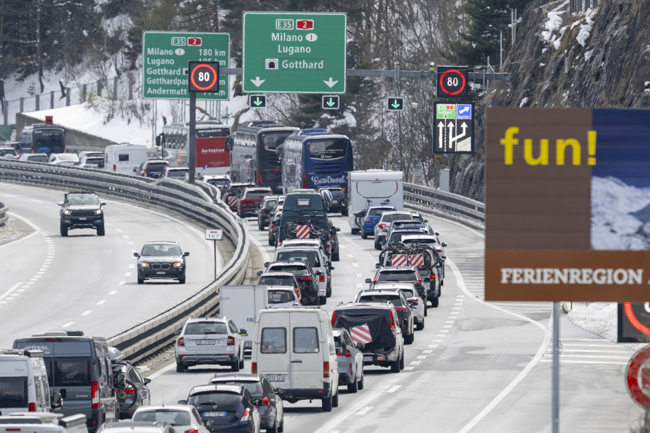 Un’altra misura farà però sicuramente scorrere fiumi d’inchiostro, sia in Svizzera che all’estero. Appena una decina di giorni fa, il Parlamento svizzero ha accettato una mozioneCollegamento esterno che chiede al Governo di presentare un disegno di legge per introdurre una nuova tassa di transito per i veicoli a motore che attraversano il Paese, “senza una permanenza significativa in Svizzera”. L’obiettivo di questa tassa è appunto di ridurre il sovraccarico della rete viaria nazionale, in particolare lungo l’asse nord-sud. L’importo varierà in funzione della densità del traffico, della fascia oraria e del giorno della settimana.