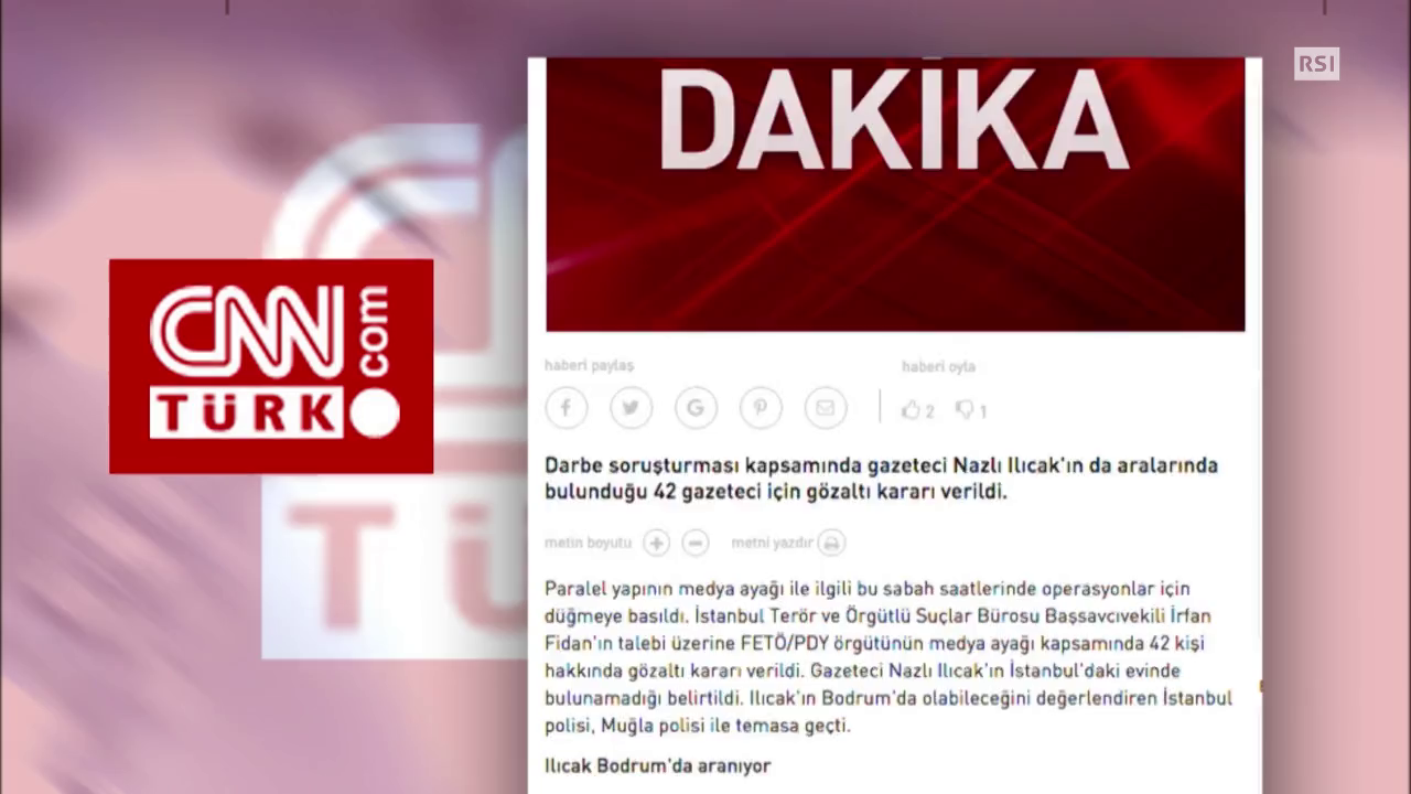 In Turchia continua la repressione del governo contro i presunti sostenitori del fallito colpo di stato del 15 luglio. Erdogan torna a prendersela con la stampa: sono almeno 42 i giornalisti nei confronti dei quali è stato emesso un mandato di arresto perché sospettati di simpatizzare per Fetullah Gülen, il religioso esiliato negli Stati Uniti accusato di essere la mente del golpe.