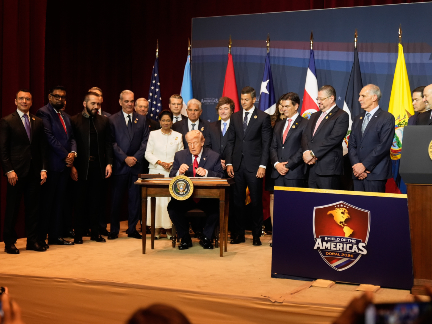 “La nostra dottrina chiarisce che non ci saranno influenze straniere ostili” nell’emisfero occidentale, ha aggiunto poco prima di passare la parola a Rubio, che parlando in inglese e poi in spagnolo, ha ringraziato Trump per aver fatto dell’emisfero occidentale la sua “priorità” e ha ringraziato i leader dei paesi dell’America Latina per la cooperazione.